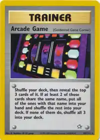 Arcade Game (Japanese: スロットゲーム Slot Game) is a Goldenrod Game Corner card. It is part of the Neo Genesis expansion.