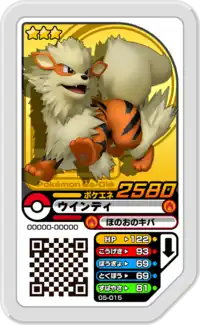 Arcanine (Japanese: ウインディ Windie) is a Grade 3 Pokémon Ga-Olé disk. It is part of the fifth set.