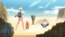 Later, Violet and Arven passed through Asado Desert again, though the Quaking Earth Titan was nowhere in sight. Cassiopeia contacted them and informed Violet that Team Star's Schedar Squad was planning on increasing their security following Violet's victory over Giacomo and suggested he'd head to their base to deal with them before the new security could arrive. While Violet agreed, Arven was more eager to find the Quaking Earth Titan and its Herba Mystica in order to heal his Mabosstiff more. As such, Violet chose to leave Arven behind in the desert, telling him to contact him if he found the Titan. Worried that Violet would have less allies now to take on Team Star, Arven contacted Clavell for help. In the next chapter, Arven was surprised to see Miraidon returning with Scarlet instead of Violet.