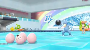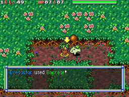 Barrage inflicts damage, hitting the target 2-5 times per use. Each hit has a separate accuracy check, though the move will continue even when a hit fails. Prior to Super Mystery Dungeon, if a targeted Pokémon faints in middle of the attack, the remaining projectiles will be able to hit a new target. The move's critical-hit rate is reduced (2% in the Rescue Team, Explorers and Adventure Squad series). In Super Mystery Dungeon, the move's range is increased to affect an area in a fan-like area up to 5 tiles away.