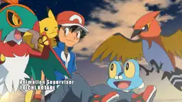 - Due to using scenes from Mega V, which was not updated to feature Ash's Frogadier and was also replaced before A Showcase Debut!, this opening theme makes appearances on future episodes where Ash's Froakie evolved into Frogadier, yet still featuring Froakie, and it also appears on episodes with Serena's new design, yet still features her old design.
