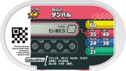 Beldum (Japanese: ダンバル Dumbber) is a Grade 2 Pokémon Mezastar tag. It is part of the first Gorgeous Star set.