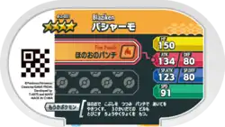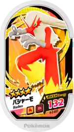 Blaziken (Japanese: バシャーモ Bursyamo) is a Grade 4 Pokémon Mezastar tag. It is part of the second Gorgeous Star set.