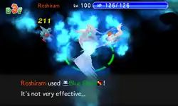 Blue Flare inflicts damage, and may leave the target with a burn. In Gates to Infinity, the move is only able to be used by opposing Reshiram (cannot be recruited).