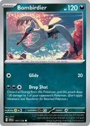 Bombirdier (Japanese: オトシドリ Otoshidori) is a Darkness-type Basic Pokémon card. It is part of the Journey Together expansion.