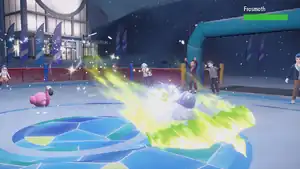 Mandibuzz flies straight into the air and her body becomes surrounded by red fire. She then flies straight at the opponent and the fire around her body turns into a light blue aura, and she slams into the opponent at full force. After the attack, her body briefly becomes surrounded in light blue static as she takes recoil damage. | ||
