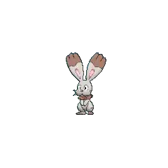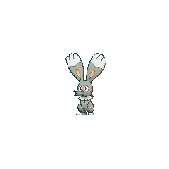 Bunnelby, the Digging Pokémon. A Normal type. Sensitive to danger, if Bunnelby hears the sound of a Corviknight 's wings, it can dig a hole to hide in almost immediately.