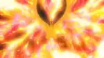The flames on Moltres's wings, crest, and tail grow larger and glow bright yellow and orange. Moltres then flaps its wings, releasing a massive wave of fire from them at the opponent. After using the move, Moltres loses its Fire type and the flames on its body burn shorter and duller. | ||