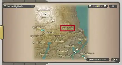 Celestica Ruins (Japanese: カミナギ寺院跡 Kaminagi Temple Ruins) is an area located in the central region of the Coronet Highlands of Hisui. It is located north of Clamberclaw Cliffs and Celestica Trail, and east of the Sacred Plaza.