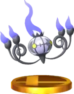 Chandelure appears in the 3DS version as an enemy in Smash Run mode. It will use Will-O-Wisp and Fire Spin to attack. As an homage to its Flash Fire ability, it absorbs fire- and darkness-based attacks and items to power itself up.