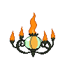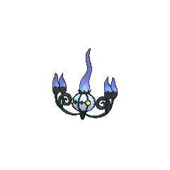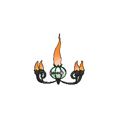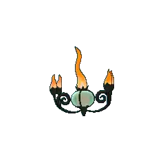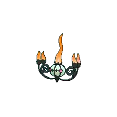 Chandelure's flames do not burn their victims physically; rather, they burn the victim's spirit. After hypnotizing its opponent by waving these flames, it absorbs the victim's spirit. It is said that any spirits that get incinerated by Chandelure's flames end up losing their way and are forced to wander the mortal world forever. Chandelure is known to reside in rundown mansions. There is a rumor that some homes were illuminated by Chandelure instead of traditional lighting, which lead to the deaths of many unfortunate residents.