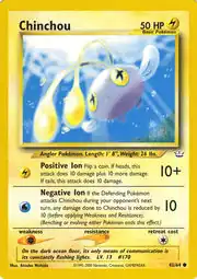 Chinchou (Japanese: チョンチー Chonchie) is a Lightning-type Basic Pokémon card. It is part of the Neo Revelation expansion.