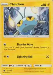Chinchou (Japanese: チョンチー Chonchie) is a Lightning-type Basic Pokémon card. It is part of the Lost Thunder expansion.