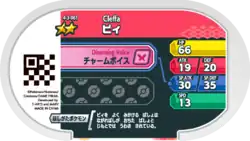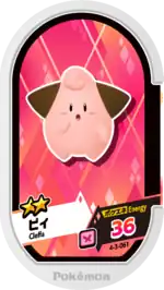 Cleffa (Japanese: ピィ Py) is a Grade 2 Pokémon Mezastar tag. It is part of the third Gorgeous Star set.