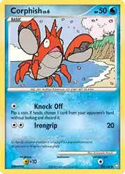 Corphish (Japanese: ヘイガニ Heigani) is a Water-type Basic Pokémon card. It is part of the Legends Awakened expansion.
