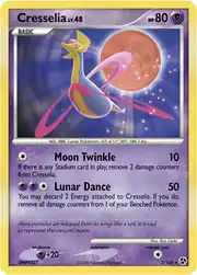 Cresselia (Japanese: クレセリア Cresselia) is a Psychic-type Basic Pokémon card. It is part of the Great Encounters expansion.