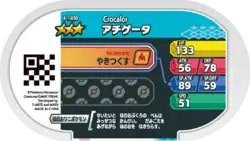 Crocalor (Japanese: アチゲータ Achigator) is a Grade 3 Pokémon Mezastar tag. It is part of the first Gorgeous Star set.