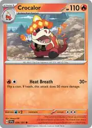 Crocalor (Japanese: アチゲータ Achigator) is a Fire-type Stage 1 Pokémon card. It is part of the Surging Sparks expansion.