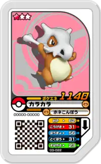 Cubone (Japanese: カラカラ Karakara) is a Grade 1 Pokémon Ga-Olé disk. It is part of the third set.