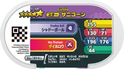 Cursola (Japanese: サニゴーン Sunigoon) is a Grade 5 Pokémon Mezastar tag. It is part of the second Gorgeous Star set.