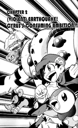 (Violent) Earthquake! Cyrus's Consuming Ambition (Japanese: 激震! アカギの野望!! The Ground Shakes! Akagi's Ambitions!!) is the nineteenth chapter of the Pokémon Diamond and Pearl Adventure! manga.