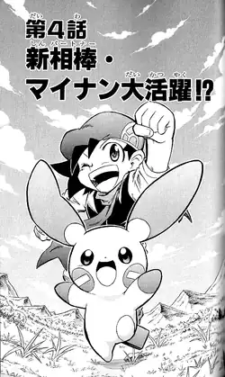 Hareta's Excellent New Partner...Minun?! (Japanese: 新相棒・マイナン大活躍!? New Partner - The Energetic Minun!?) is the thirty-first chapter of the Pokémon Diamond and Pearl Adventure! manga.