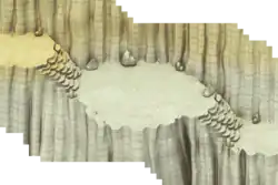 It is located east of Tilt Village on Mitonga Island and can be accessed via a cave in Tilt Village. During their first visit there, players must go through the cliffs under a certain time limit. They must make many precise jumps while riding Raikou to get through the area. In addition, the Pokémon Pinchers' Submarine can be found here during the player's first visit.