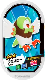 Dartrix (Japanese: フクスロー Fukuthrow) is a Grade 3 Pokémon Mezastar tag. It is part of the third Gorgeous Star set.