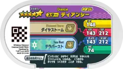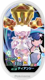 Diancie (Japanese: ディアンシー Diancie) is a Grade 5 Pokémon Mezastar tag. It is part of the fifth Gorgeous Star set.