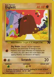 Diglett (Japanese: ディグダ Digda) is a Fighting-type Basic Pokémon card. It is part of the Team Rocket expansion.