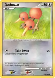 Take Down is a move in the Pokémon games that Doduo can learn. This card's Pokédex entry comes from Pokémon Diamond, Pearl, and Platinum.