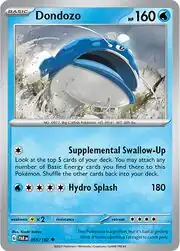 Dondozo (Japanese: ヘイラッシャ Heyrusher) is a Water-type Basic Pokémon card. It is part of the Paradox Rift expansion.