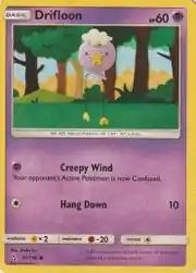 Creepy Wind is an attack that first appeared on Drifloon from Plasma Blast. Hang Down is an attack that first appeared on Shuppet from Secret Wonders. This card's Pokédex entry comes from Pokémon Moon.