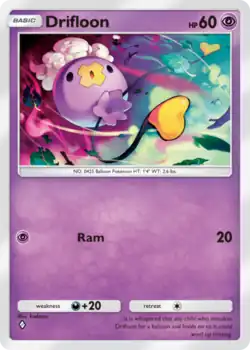 Drifloon (Japanese: フワンテ Fuwante) is a Psychic-type Basic Pokémon card in Pokémon Trading Card Game Pocket. It is part of the Shining Revelry expansion.