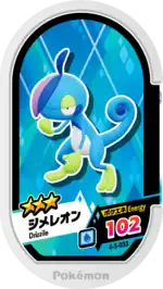 Drizzile (Japanese: ジメレオン Jimereon) is a Grade 3 Pokémon Mezastar tag. It is part of the fifth Gorgeous Star set.