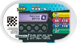 Dusclops (Japanese: サマヨール Samayouru) is a Grade 3 Pokémon Mezastar tag. It is part of the fourth Double Chain set.