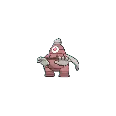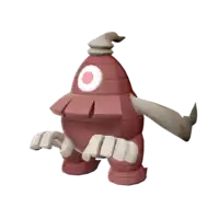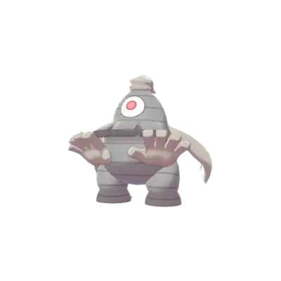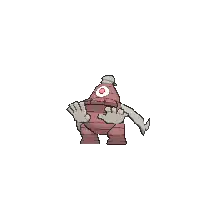 Dusclops is a Pokémon with a roundish gray body with two stubby legs. Its body is hollow and wrapped in bandages. It has a single red eye and three tooth-like projections. The red eye is said to be the true form of Dusclops, but no one has yet to see this claim. It has two wispy, light gray growths coming out of its shoulders and one on top of its head. Its light gray hands are almost always depicted as being directly attached to its body, though in PK15 and in several panels of Pokémon Adventures they can be seen floating independently.