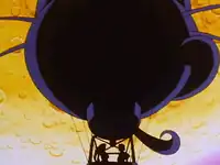 Suddenly, Team Rocket arrives in their balloon and begins sucking up the Ivysaur into a bag. Pikachu begins to fly upwards, but Bulbasaur catches him with its vine and pulls him to safety. Ash tells Bulbasaur to knock Team Rocket out of the sky, and Bulbasaur tries using Razor Leaf, but it fails. James asks if they should get Bulbasaur, and Jessie and Meowth just laugh, saying Bulbasaur is a wimp. Bulbasaur shouts and the sun suddenly rises over the horizon, its rays entering through the opening on the top of its bulb. Ash consults with his Pokédex, which says that it is getting ready to use Solar Beam. Bulbasaur then releases a beam of energy toward Team Rocket, hitting the vacuum bag first before piercing the balloon. It explodes, and Bulbasaur frees all of the Ivysaur with Razor Leaf, while Team Rocket falls to the ground in their basket. All of the Pokémon strike Team Rocket all at once with their vines, sending them blasting off again.