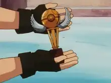 Just before the "To Be Continued" shot at the end of the episode, an image of Ash posing with the Winner's Trophy appears in the middle of the screen. In the Japanese version, this image shrinks away when Ash finishes talking and the "To Be Continued" text appears on the screen, but in the dub, it does not. However, the sound effect of the image shrinking away can still be heard in the dub.