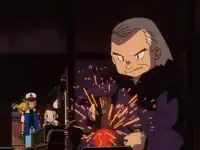 Suddenly, one Pineco tries bouncing up the hill towards Team Rocket and it tackles the trio off their bicycle, powering down the fan. Team Rocket is left red-faced and decide to teach the Pineco a lesson. Jessie sends out her Arbok to give chase. James, in turn, orders his Victreebel to attack, but it instead latches onto his head, as usual. Pineco craftily dodges Arbok and rushes towards Team Rocket again. At Maizie's suggestion, Brock throws the Fast Ball that Kurt gave to him earlier and catches the Pineco to get it out of harm's way. Victreebel and Arbok go on the attack again, but Pikachu evades them both. The Mouse Pokémon next uses Quick Attack and hits Team Rocket’s Pokemon with a Tackle, knocking them into Team Rocket. Pikachu follows up with a Thunder, which causes Team Rocket’s fan to explode and send the trio blasting off again.