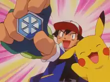 This marks the only time when Ash has won a Gym battle by his opponent forfeiting.