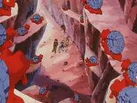 Ash and his friends make their way through some rugged terrain, still bound for Blackthorn City. Misty complains about the increasing heat. Brock points out that there are volcanoes and hot springs around, which doesn't please Misty at all. Meanwhile, Team Rocket is relaxing in the hot springs when Meowth spots the group walking past. However, Jessie and James return to their relaxation, declaring that the twerps are the reason for their stresses. A huge geyser suddenly erupts beneath the Rocket trio, sending them blasting off.