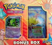 A limited release in stores such as Wal-Mart during November 2006, the Bonus Box was the first to include a Cosmos Holofoil version of Celebi-ex. The box is packaged with one of the four EX Deck Tins, originally released in October 2004, as well as an assortment of six EX Series booster packs (including the one packaged within the EX Deck Tin).