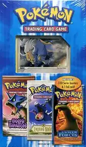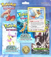 Three Blister Packs collectively featuring the Legendary beasts Entei, Raikou, and Suicune were released during October 2006 at Target and other similar stores. Each pack contains a POP Series 2 Cosmos Holofoil reprint of one of the legendary beasts, two EX Series booster packs (one EX Unseen Forces, one EX Delta Species), and a coin with varying designs.