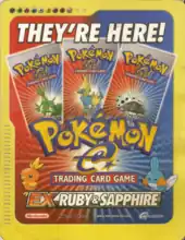 Continuing the tradition of releasing Theme Decks alongside main expansions, the first of those under Nintendo feature the fully evolved forms of two of the three Hoenn first partner Pokémon, Blaziken and Swampert, in the Ruby Theme Deck and Sapphire Theme Deck, respectively. Both Theme Decks feature a handful of new Generation III Pokémon and Trainer cards debuting in the EX Ruby & Sapphire expansion, and introduce players to the game mechanics brought into effect with the beginning of the EX Series.