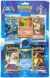 A large Blister Pack made available in March 2007 and sold in stores such as Wal-Mart. The pack contains two more Cosmos Holofoil reprints of cards originally released in the promotional Organized Play set POP Series 4: Combusken and Mudkip. Bucking the trend of prior Blister Packs, the two cards are of uncommon and common rarity as opposed to rare. Also included in the pack are four EX Series booster packs: one from EX Delta Species, one from EX Legend Maker, one from EX Holon Phantoms, and one from EX Crystal Guardians, plus a silver Energy coin.
