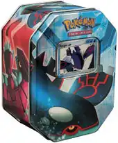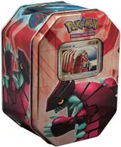 The second wave of EX Collector's Tins was released on October 1, 2006, and came in three varieties. These were the first tins to have individually designed lids to further showcase and reflect the promotional card available inside, which has remained the precedent for the majority of collector's tins since. The three cards available are Kyogre-ex, Groudon-ex, and Rayquaza-ex–all of which originated as Limited Edition Starter Kit PLAY Promotional cards from Japan. All three tins contain four EX Series booster packs–two from EX Emerald, and two from EX Crystal Guardians.