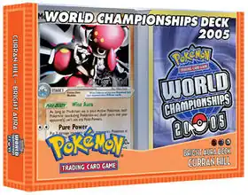 The 2006 World Championships Decks were released on October 31, 2006, a couple of months after the 2006 World Championships, the third sanctioned by Pokémon USA. Ten and Under Champion Hiroki Yano's B-L-S deck, Fifteen and Over Finalist Jimmy Ballard's Eeveelutions deck, Fifteen and Over Champion Jason Klaczynski's Mewtrick deck, and Eleven to Fourteen Champion Miska Saari's Suns & Moons deck make up the four chosen to represent the tournament. Each deck comes with a 2006 World Championships booklet and a non-tournament legal print of the 60-card deck.