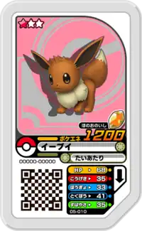 Eevee (Japanese: イーブイ Eievui) is a Grade 1 Pokémon Ga-Olé disk. It is part of the fifth set.