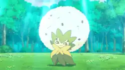 Eldegoss's cotton fluff acts like a cushion to protect its head from attacks. The cotton can also be spun into a glossy, gorgeous yarn that is a specialty in Galar. When Eldegoss's cotton is weaved together with Cottonee's cotton, it makes a cloth that is popular with many luxury brands. It is said that the seeds inside Eldegoss's cotton fluff is highly nutritious and beneficial for people and Pokémon. Eldegoss spreads the seeds by wind, enriching the soil with nutrients wherever these seeds land.[1]